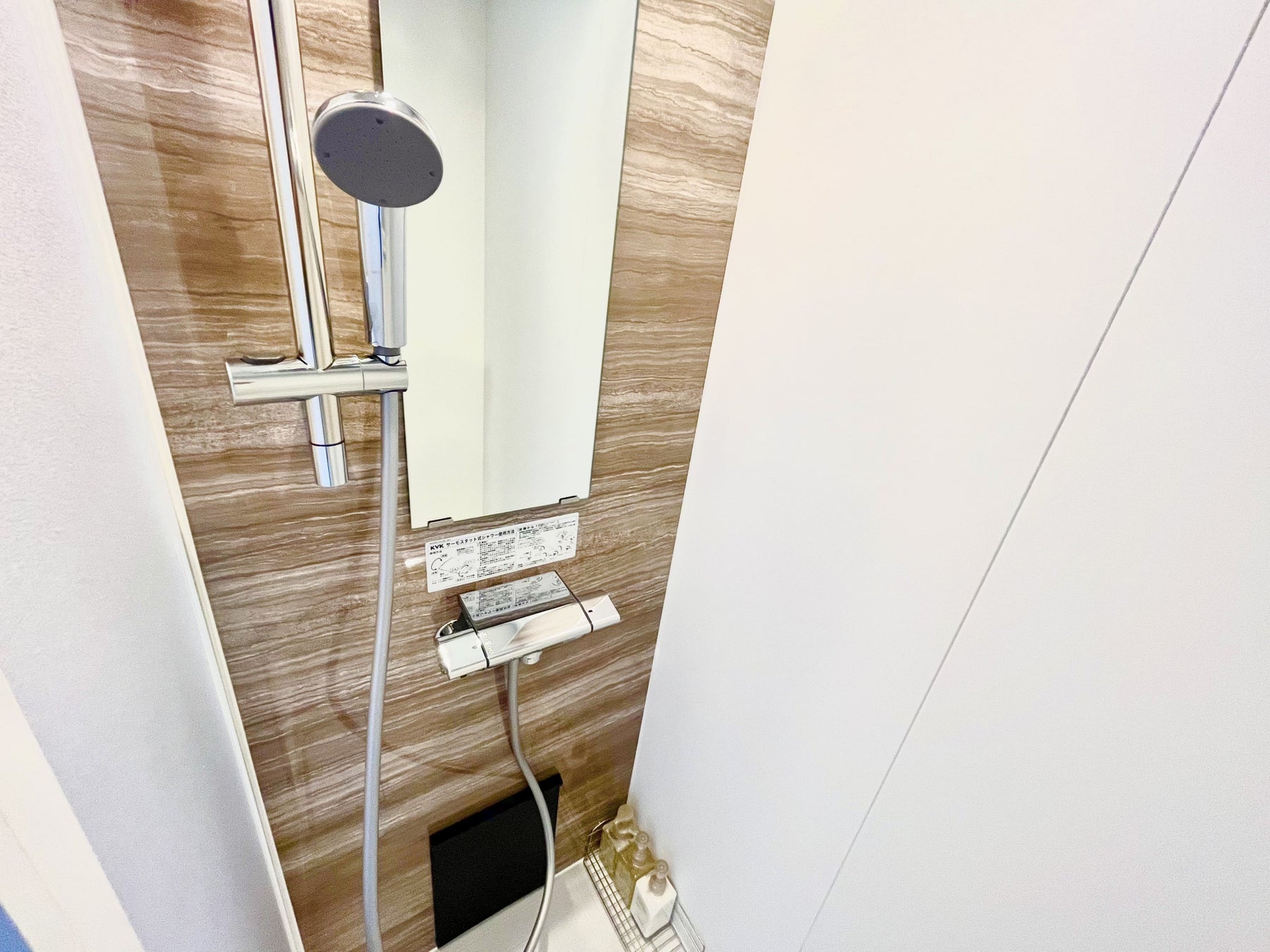 ・内装:清潔感あるシンプルデザイン、エステマット、施術ベッド、ワゴン、タオルウォーマー、シャワー室など