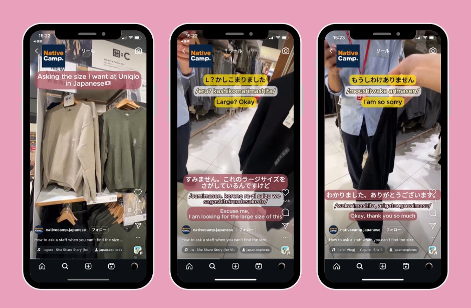 Instagramでは、日本での買い物やレストランでの食事、日本文化の紹介など、日常生活に基づいたさまざまなシーンを取り上げた動画コンテンツを配信してまいります。これにより、買い物やオーダーの場面で役立つ自然な日本語表現を学びながら、リアルな日本文化にも触れていただけます。