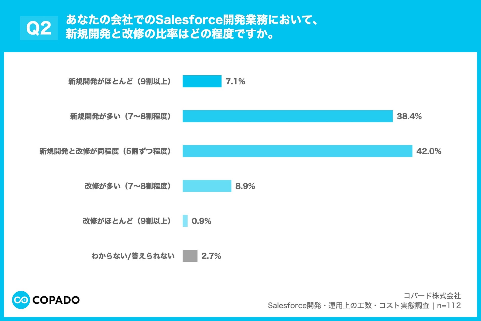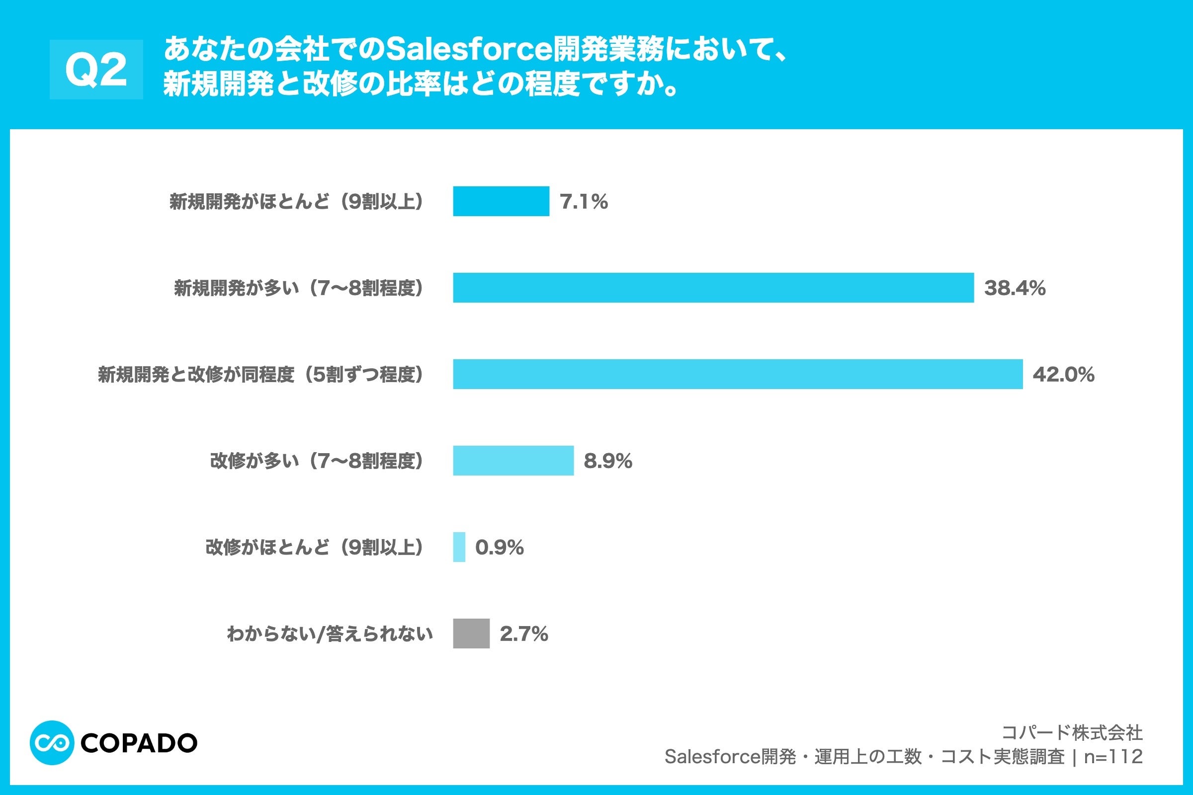 Salesforce開発における新規開発と改修の比率、42.0%が「半々」と回答