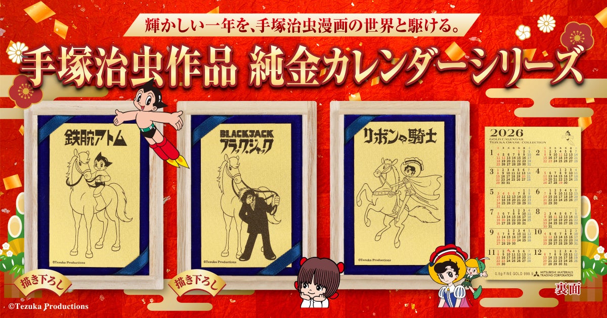 手塚プロダクション監修「2026年純金カレンダー」登場!『アトム』『ブラック・ジャック』『リボンの騎士』が“午年”を駆ける