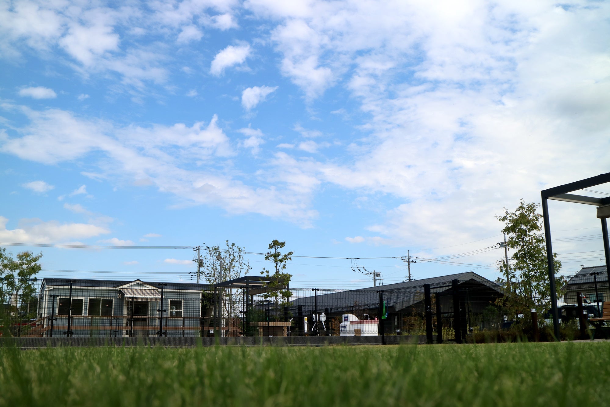足腰に優しい天然芝を採用:地面には天然芝を全面採用。土やコンクリートと比べ、愛犬の足腰や関節への負担を大幅に軽減します。また、見た目にも美しく、リラックスできる空間を提供します。