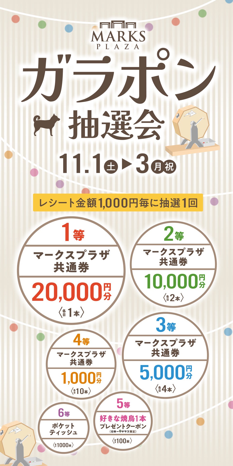 レシート合計金額1,000円ごとに、抽選に1回ご参加いただけます。