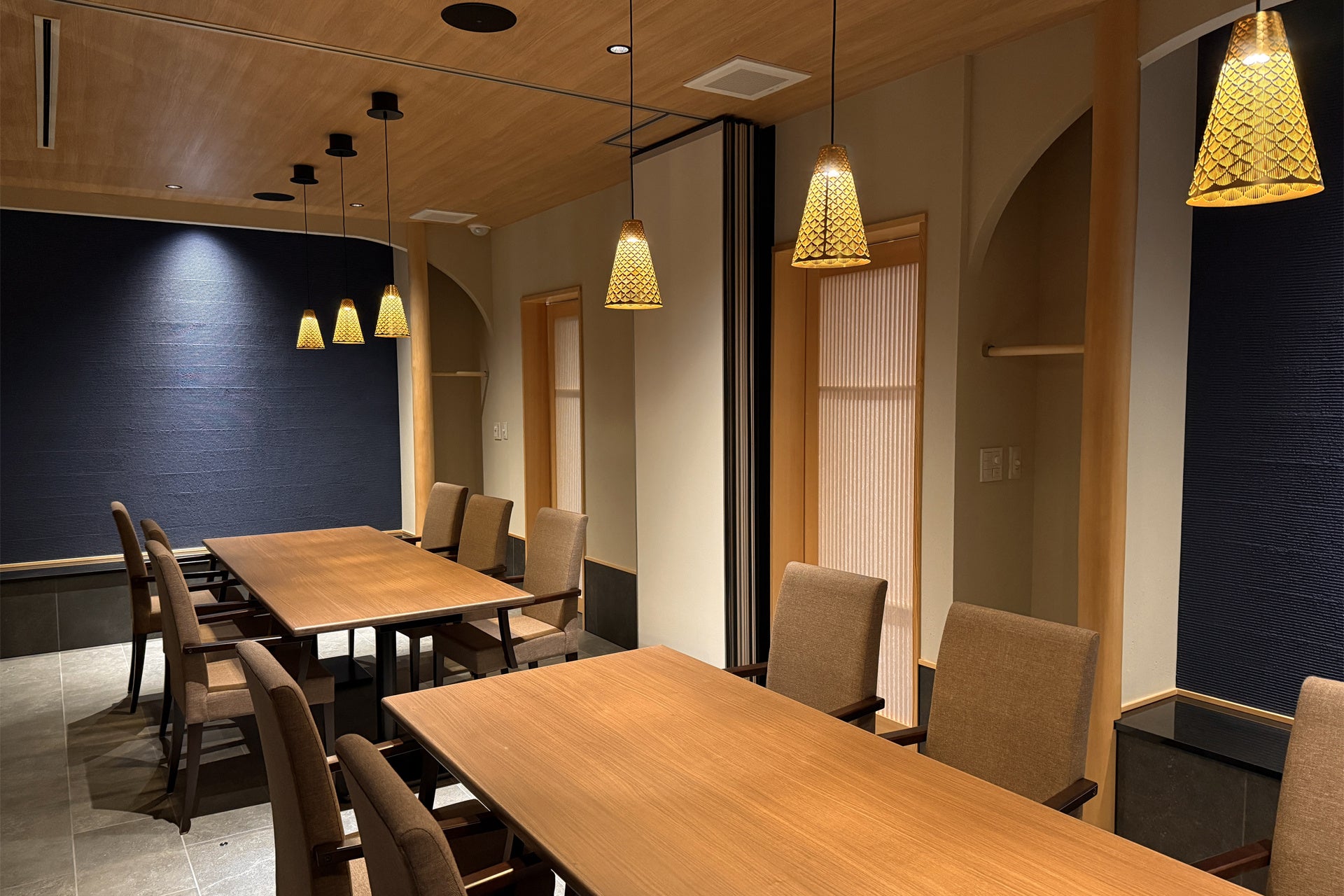 店内は全80席を備え、大小個室を完備しております。ご家族の集まりや接待、特別な日のお食事など、さまざまな用途でご利用いただける快適な空間を提供します。