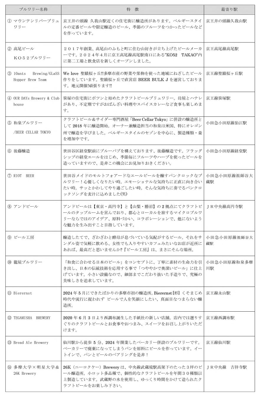 京王線沿線や多摩を代表する14ブルワリーがせいせきに集合!