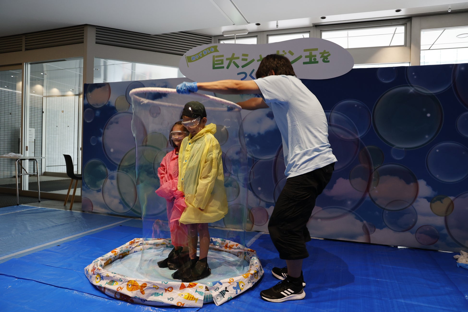 4 .工学院大学学生プロジェクトによるお子様向け科学実験「ふわふわビールスライムを作ろう」・「巨大シャボン玉に入ってみよう 」について