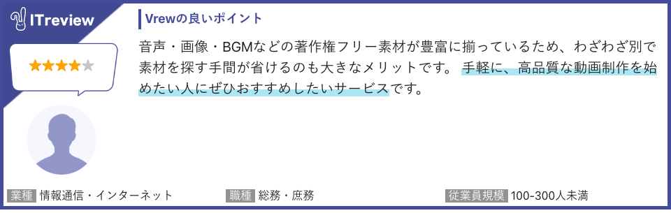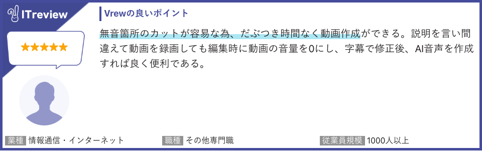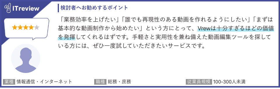 その他のレビューコメントはこちらから:https://www.itreview.jp/products/vrew/reviews