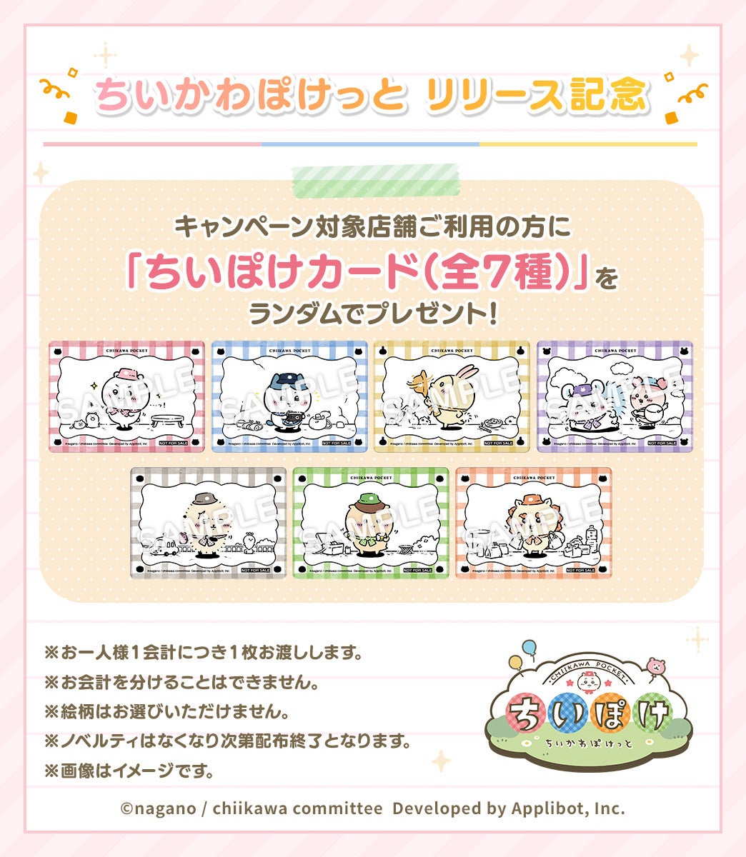 ◆全国の「ちいかわ」関連店舗にて「ちいぽけカード(全7種)」をプレゼント!