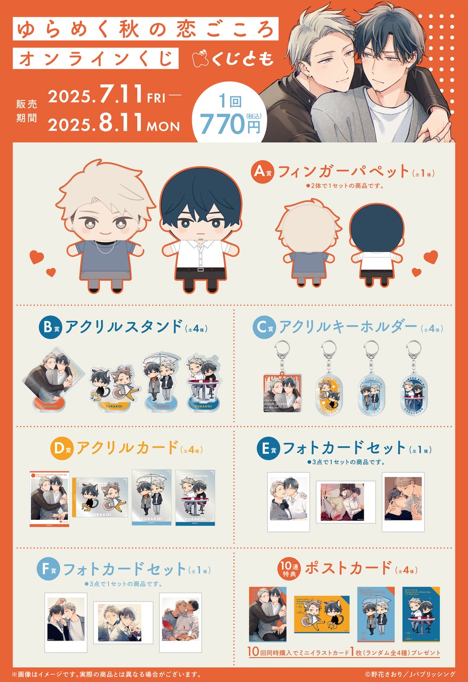 株式会社ブリッジ(本社:東京都千代田区 代表取締役社長:加藤 勝)は、運営するオンラインくじサービス「くじとも」より、野花さおり先生の大人気作品 arca comics『ゆらめく秋の恋ごころ』オンラインくじを、2025年7月11日(金)18時より販売します。