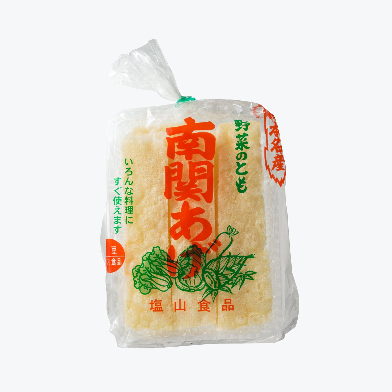 九州圏以外ではあまり馴染みがない「南関あげ」ですが、熊本ではソウルフードとしてよく知られている地元の揚げ豆腐です。一般的な揚げ豆腐より長期保存が可能で、食感はふっくら。味噌汁の具や煮物、煮込み料理などさまざまな料理に利用できます。