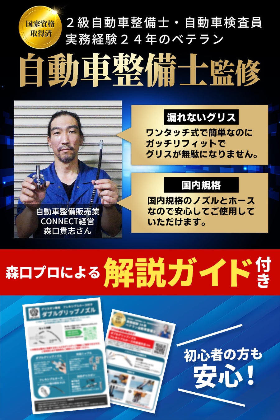 プロ整備士による解説ガイドは、写真入り説明書と動画で初めてでも迷わず安心して使える。