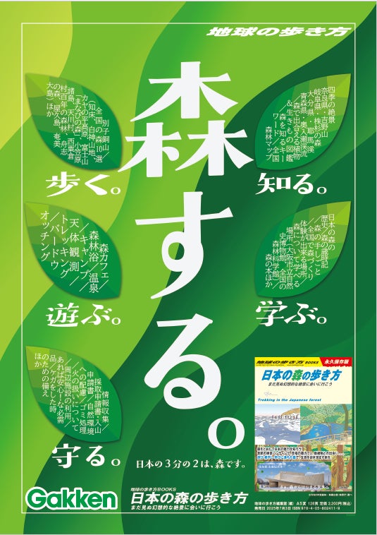 そんな想いに共鳴いただき、多くの旅人に旅の感動を届けてきた『地球の歩き方』とのコラボレーションが実現しました。本書を通して、日本各地の森に関心を持ち、実際に訪れる旅の後押しとなること、そして森の価値に触れる体験が、よりよい未来へと踏み出す第一歩となることを願っています。