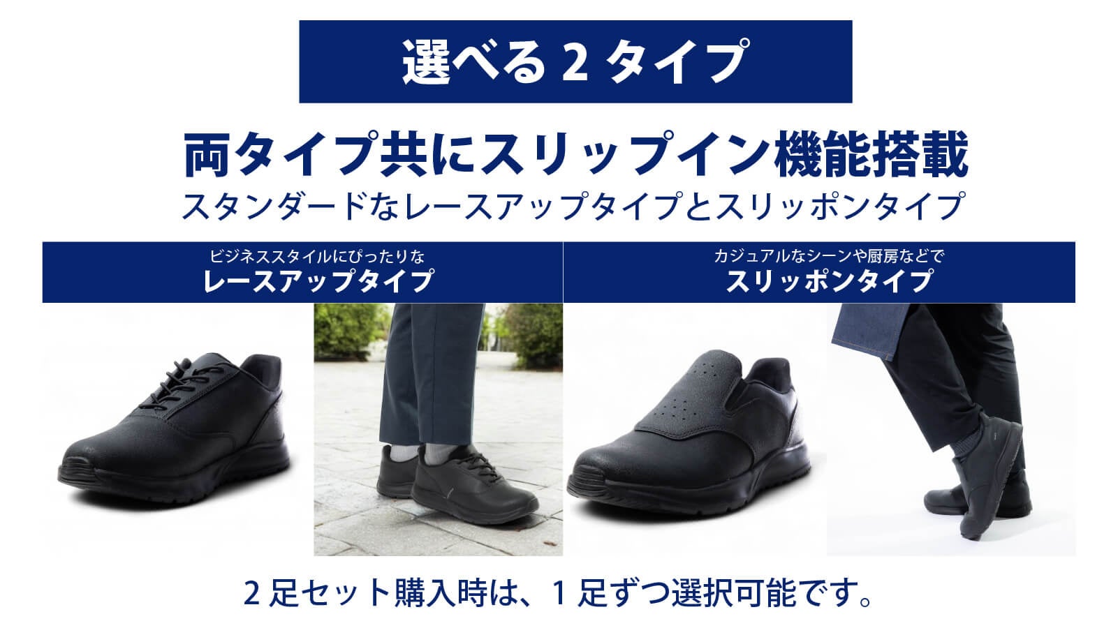 6. スリッポンタイプとシューレースタイプの2種類展開