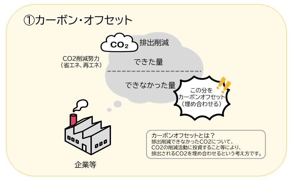 企業等は排出削減の努力を行ったうえで、どうしても排出される温室効果ガスについては、排出量に見合った削減活動に投資することで埋め合わせ(カーボン・オフセット)を行います。 J-クレジットの購入は、その具体的な手段のひとつです。