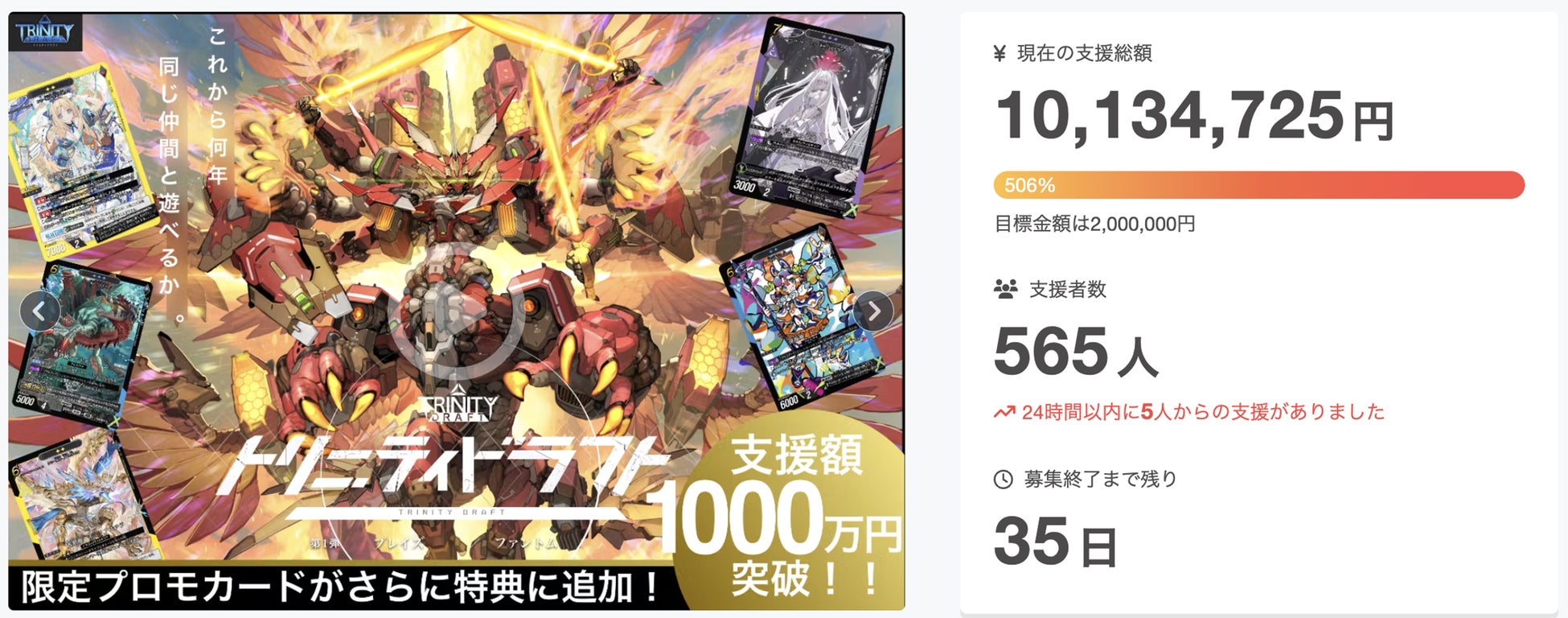 新作カードゲーム『トリニティドラフト』クラウドファンディング支援額1000万円を突破!