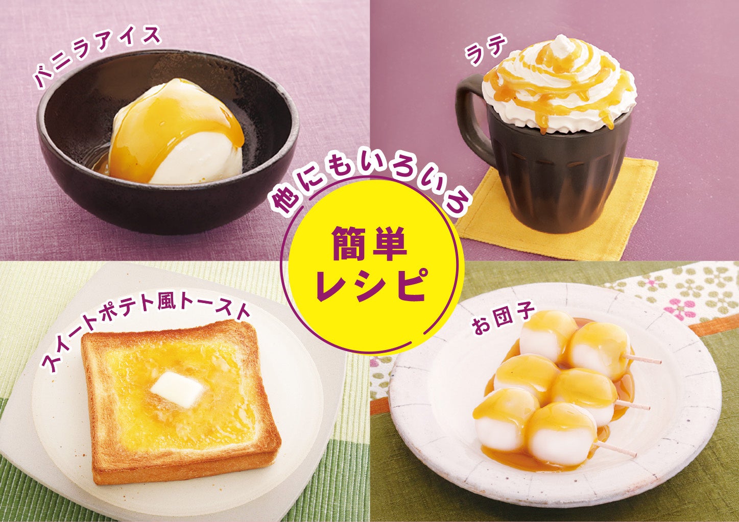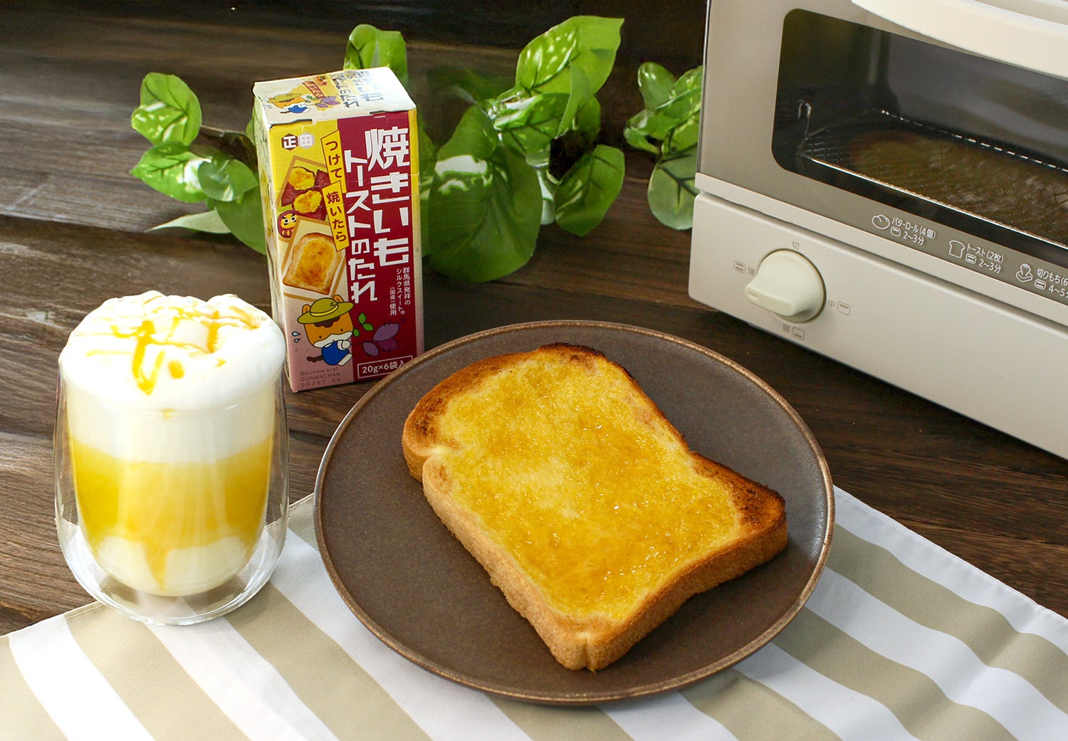 商品特徴:食パンにつけて焼くだけで“焼きいも風トースト”が食べられるパン用たれです。
