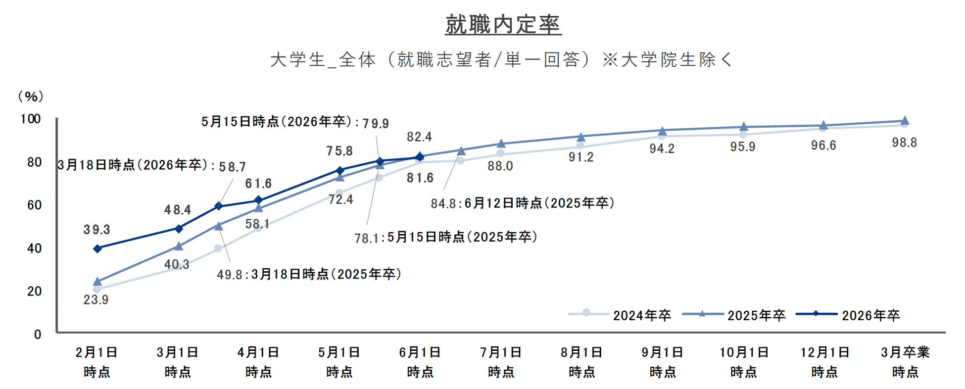 就職プロセス調査(2026年卒)「2025年6月1日時点 内定状況」