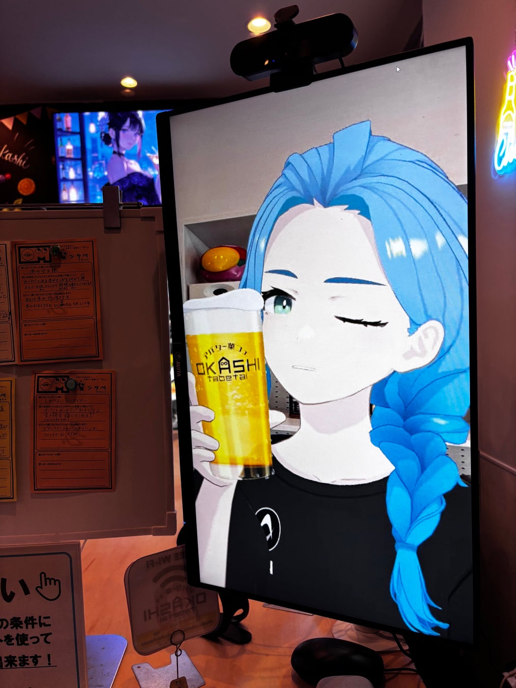 お客様はリアル店舗で飲みながら、キャストは自宅などからオンライン出演。店内モニター越しに乾杯・会話・ミニゲームを楽しむことで、「配信」と「リアルな場」を組み合わせた新しいエンターテインメント体験を提供します。