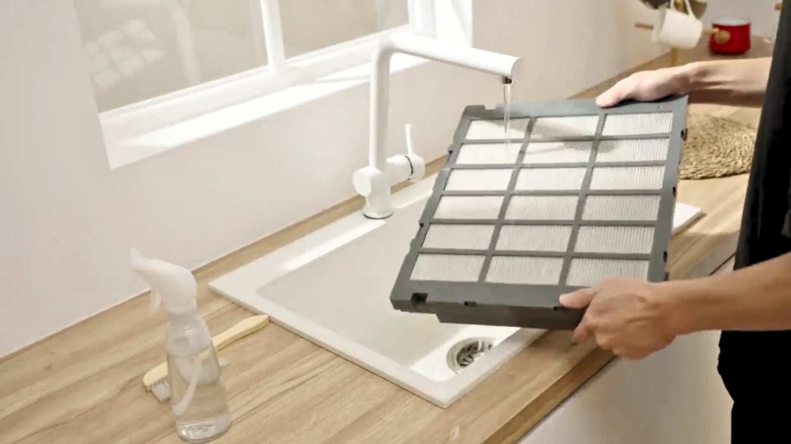 特許iCS™技術の「洗浄再生型フィルター」採用により、フィルター交換が一切不要 。汚れてもわずか3分の水洗いで性能が新品級へ復活します 。