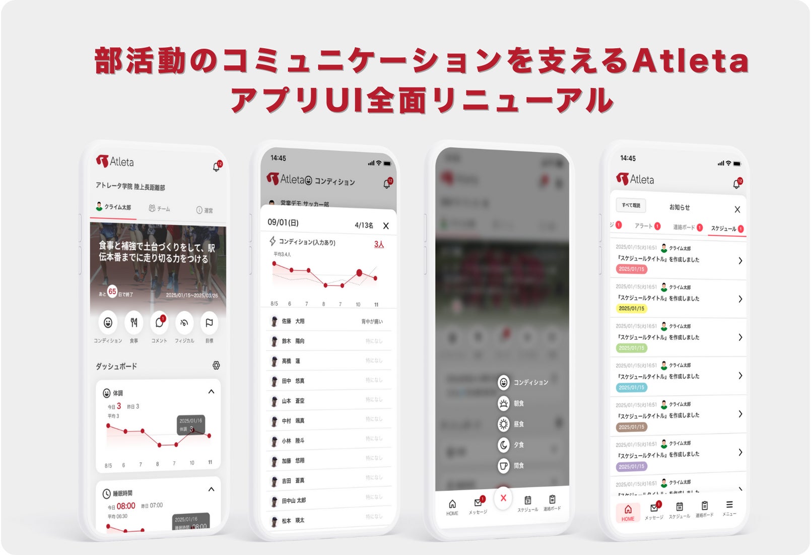 クライムファクトリー株式会社が提供する、選手データとチームコミュニケーションのプラットフォーム「Atleta(アトレータ)」は、指導者・選手アプリのホーム画面デザインを大幅リニューアルしました。選手は日々の入力を継続しやすく、指導者はチームの状況をひと目で把握できるようになり、あらゆるスポーツシーンのコミュニケーションを強力に推進します。