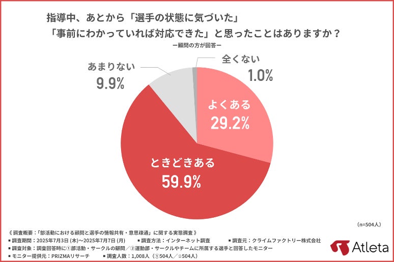 9割にのぼる指導者が、選手の状態を見逃した経験があると回答しており、