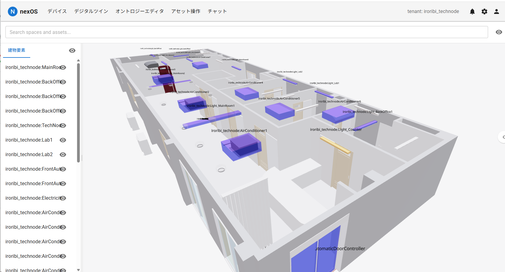 nexOSは、これらのアプリケーションを支えるデジタルツインおよび設備制御の基盤として機能します。