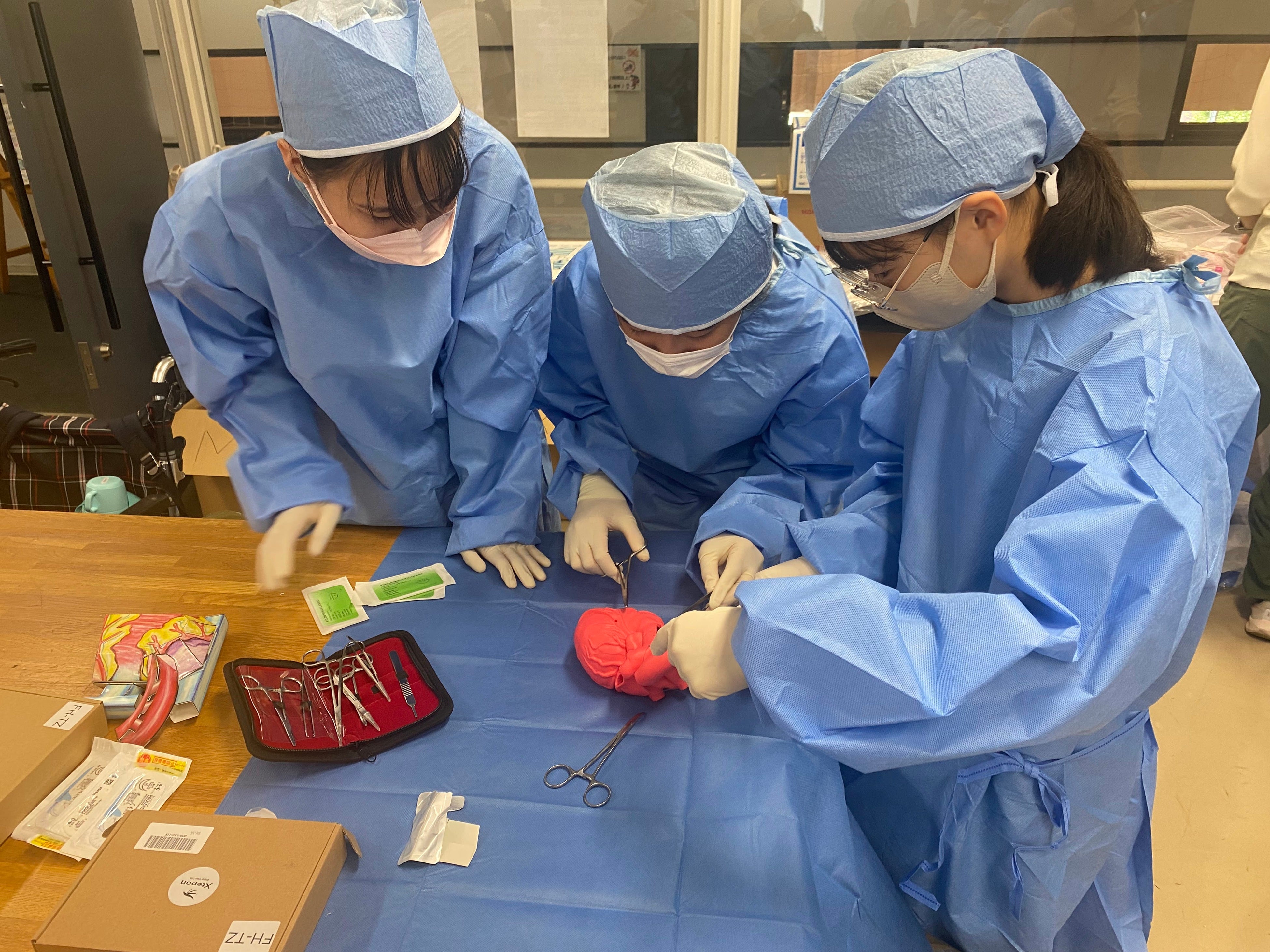 心臓外科医のように模擬心臓・血管をぬう
