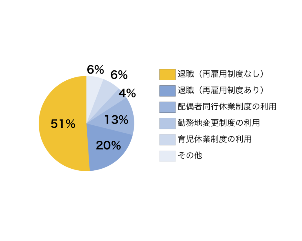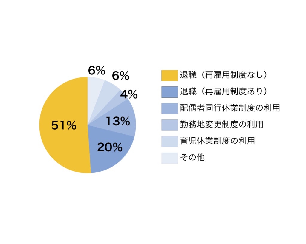 駐妻キャリア総研の調査によれば、51%が再雇用制度もないまま退職を経験し、帯同中も就労できたのはわずか8%。退職したくなかったにもかかわらず、泣く泣く辞めた女性が45%います。