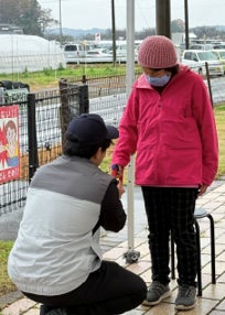 雨天にもかかわらず幅広い年代の住民の皆さまにご参加いただき、乗り物の受容性と身体機能・認知機能との関係に関する測定を行いました。