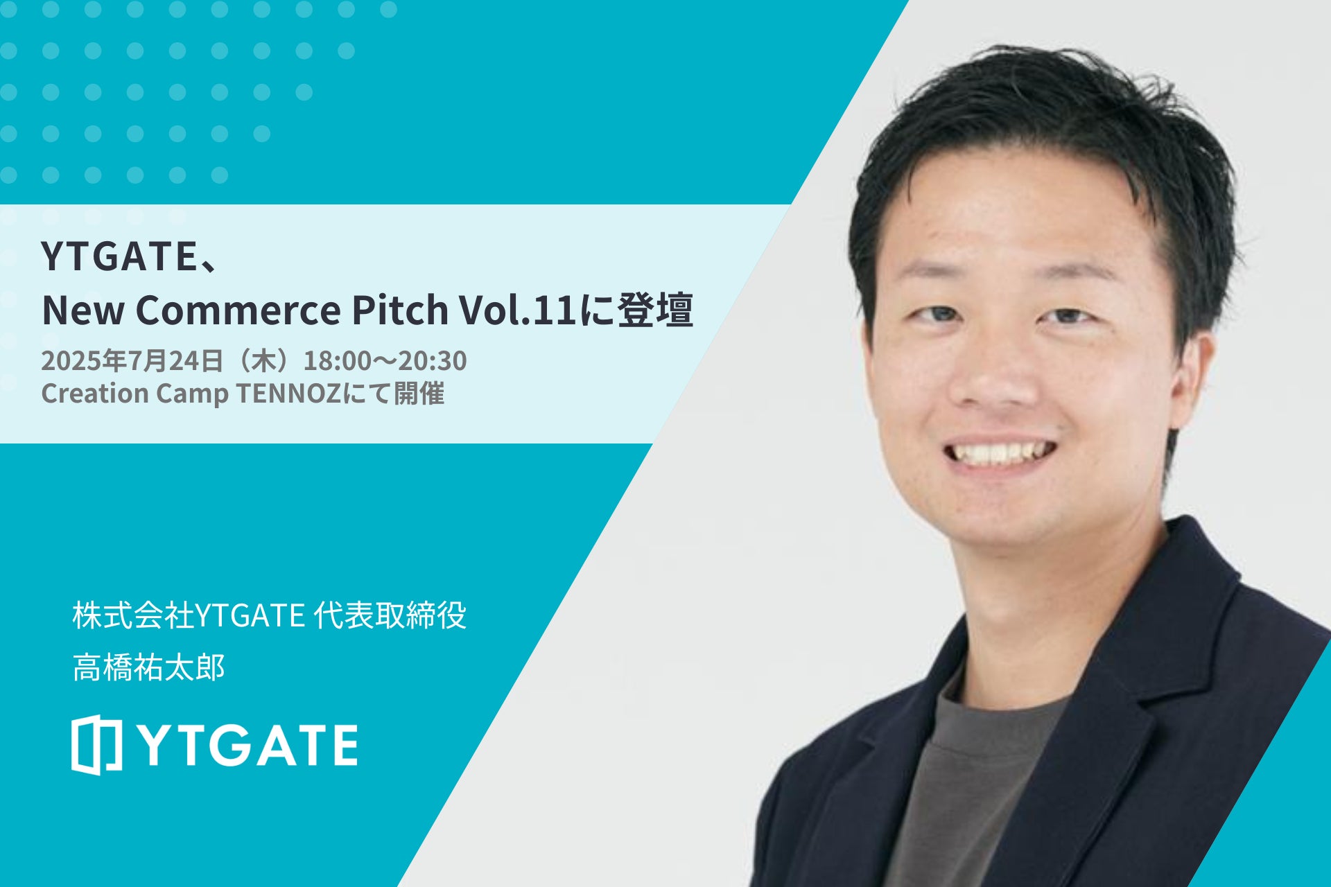 株式会社YTGATE(本社:東京都中央区、代表取締役:高橋祐太郎、以下「YTGATE」)は、2025年7月24日(木)に開催されるコマース領域特化のスタートアップイベント『New Commerce Pitch Vol.11』に代表の高橋が登壇することをお知らせいたします。