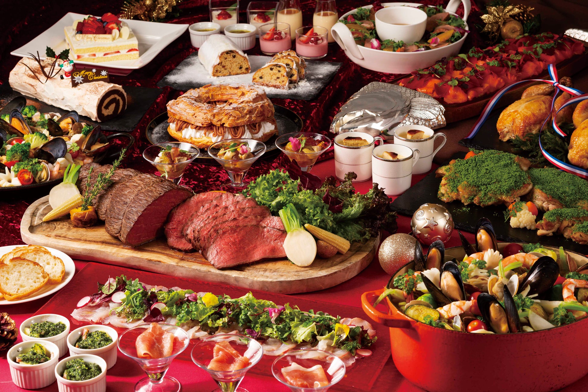<温製料理> ・国産牛のローストビーフ ペリグーソース ・豚肉のロースト 香味味噌ソース ・若鶏もも肉のブランケット ・魚介のブイヤベース風 ・白身魚のパン粉焼き タプナードソース ・サーモンのパイ包み焼き 白ワインソース ・パンチェッタとマスカルポーネのトマトソースペンネ ・鶏ひき肉ときのこのペペロンチーノスパゲッティ ・ゴルゴンゾーラとはちみつのピッツァ ・シュリンプトマトカレー ・クラムチャウダー ほか <冷製料理> ・合鴨スモークとオレンジのリース風サラダ ・生ハムとベリーのオードブル ・スモークサーモンと赤い野菜のハーモニー ・冬野菜のバーニャカウダ トリュフ風味 ・海の幸のマリネ コンソメジュレ添え ・ロースハムのフロマージュドテット ・マグロのタルタルとセルヴェルドカニュ バゲット添え ・いくらとクリームチーズのカナッペ ・キッシュとオリーブのマリネの盛り合わせ ・彩り野菜のフリッタータ ほか <キッズメニュー> ・ミニハンバーグ ・ミニオムライス ・ポテトフライ ・ミニアメリカンドッグ ほか <デザート> ・いちごのショートケーキ ・ブッシュ・ド・ノエル ・クグロフ ・オペラ ・シフォンケーキ クリームチーズ添え ・紅茶のシュークリーム ・ミニシュトーレン ほか |