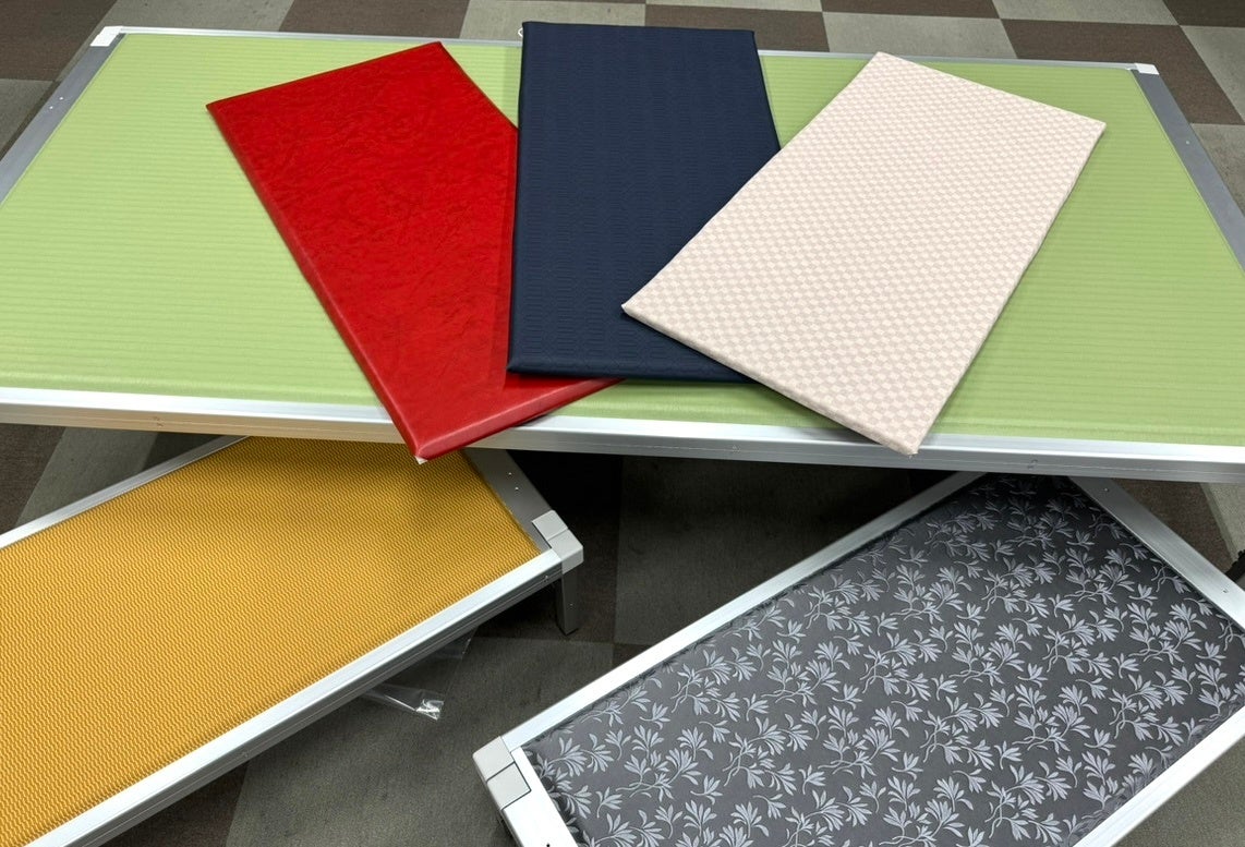 また、既存製品をさらに進化させた、セミオーダータイプのサンプルもご用意。企業向けに、近年のオフィスに合わせてデザイン性を重視したモデルも新しくラインナップに追加する予定です。ベッドのタタミ面のカスタマイズが可能となり、数種類の生地のバリエーションもあわせて展示いたします。