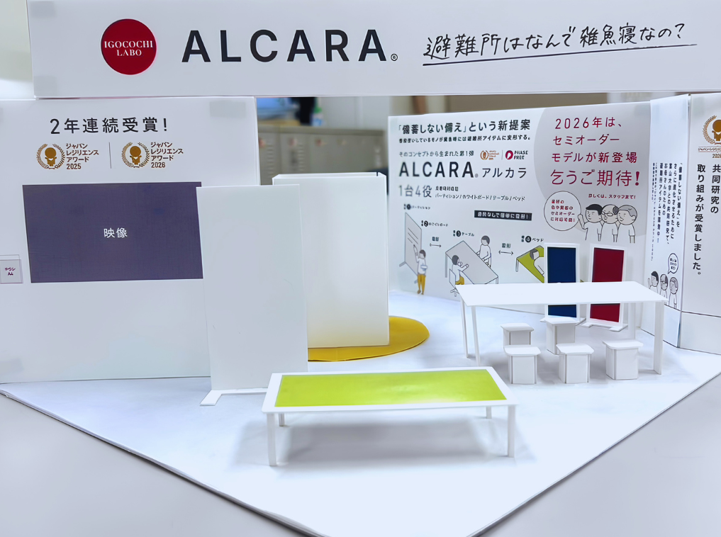 災害時対応型プロダクト「ALCARA」ほか、同シリーズとして開発中の避難所のいごこち改善のための新製品も展示します。