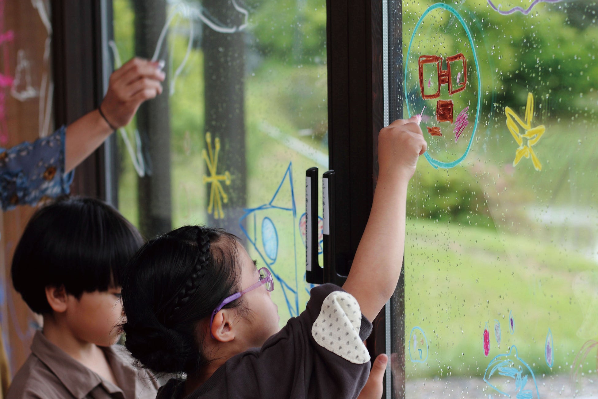 キットパスウィンドウアート 窓ガラスを大きなキャンバスにして、自由に絵を描く開放感を体験。