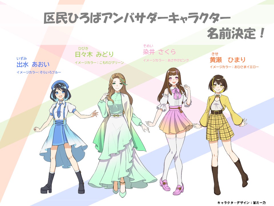 応募いただいた約90件の名前のうち、特に多かった候補から区民投票を行った結果、総数391件の投票がありました。その中でそれぞれ最も票を獲得した名前の『出水 あおい』、『日々木 みどり』、『染井 さくら』、『黄瀬 ひまり』に決定しました。