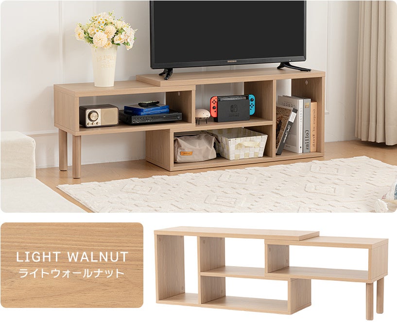一人暮らしからファミリーまで対応。コンパクト空間でも『自由に使える』新しいテレビボードのかたち。