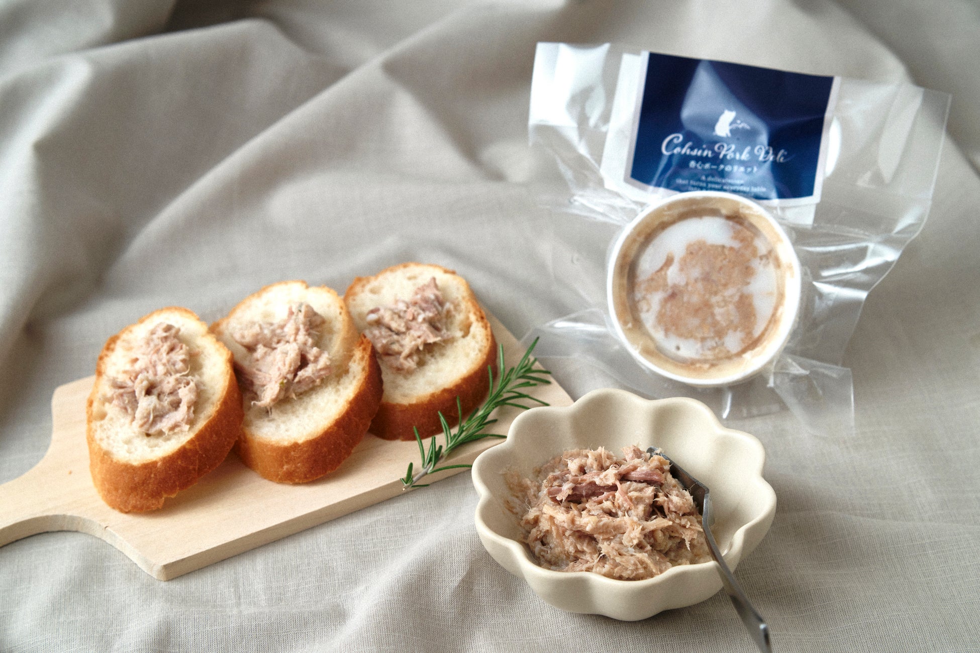 ブランド豚「香心ポーク」を、シェフの技で芳醇な『ポークリエット〈無添加〉』に仕上げました。