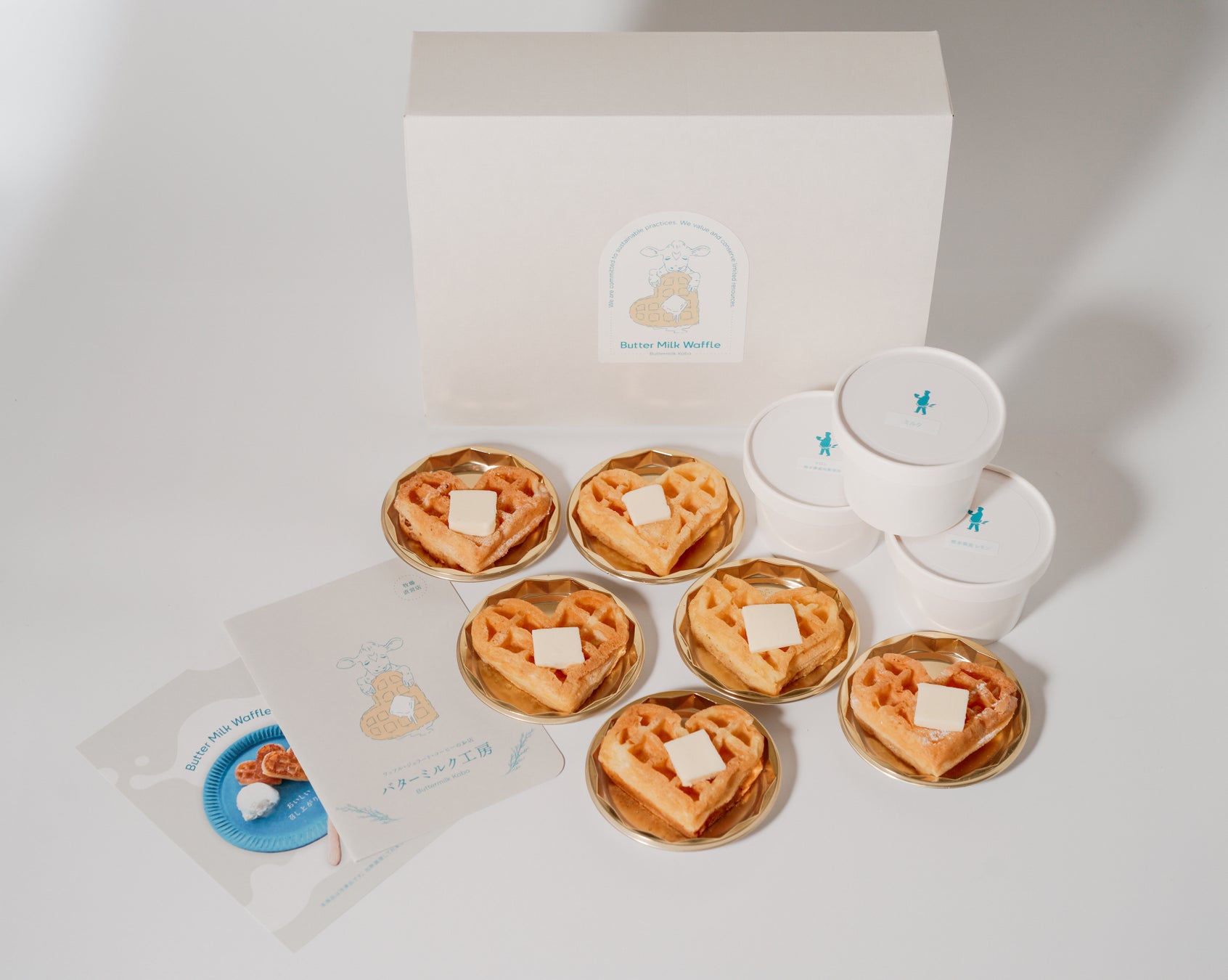 牧場直営の朝搾り乳を使った「米粉の無添加バターミルクワッフル」(温)ワッフルと(冷)ジェラートの組み合わせ♪