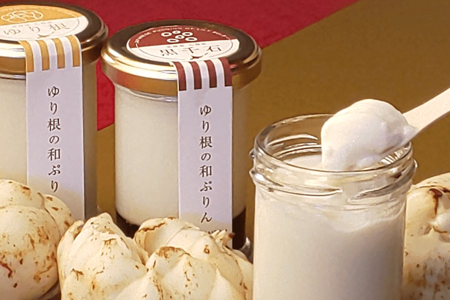 北海道乙部町で採れた新鮮なゆり根を贅沢に使った「ゆり根の和ぷりん」。