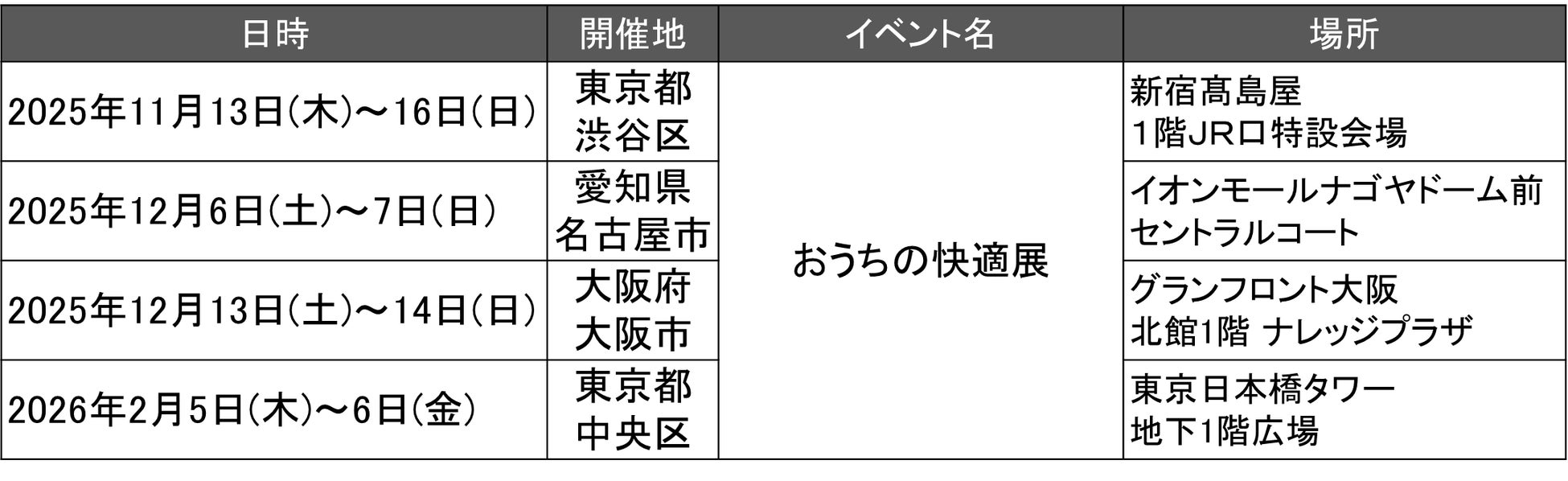 【断熱で暮らしを変える!『おうちの快適展』東京・日本橋で開催!】2月5日(木)~2月6日(金) 東京日本橋タワー 地下1階広場で実施