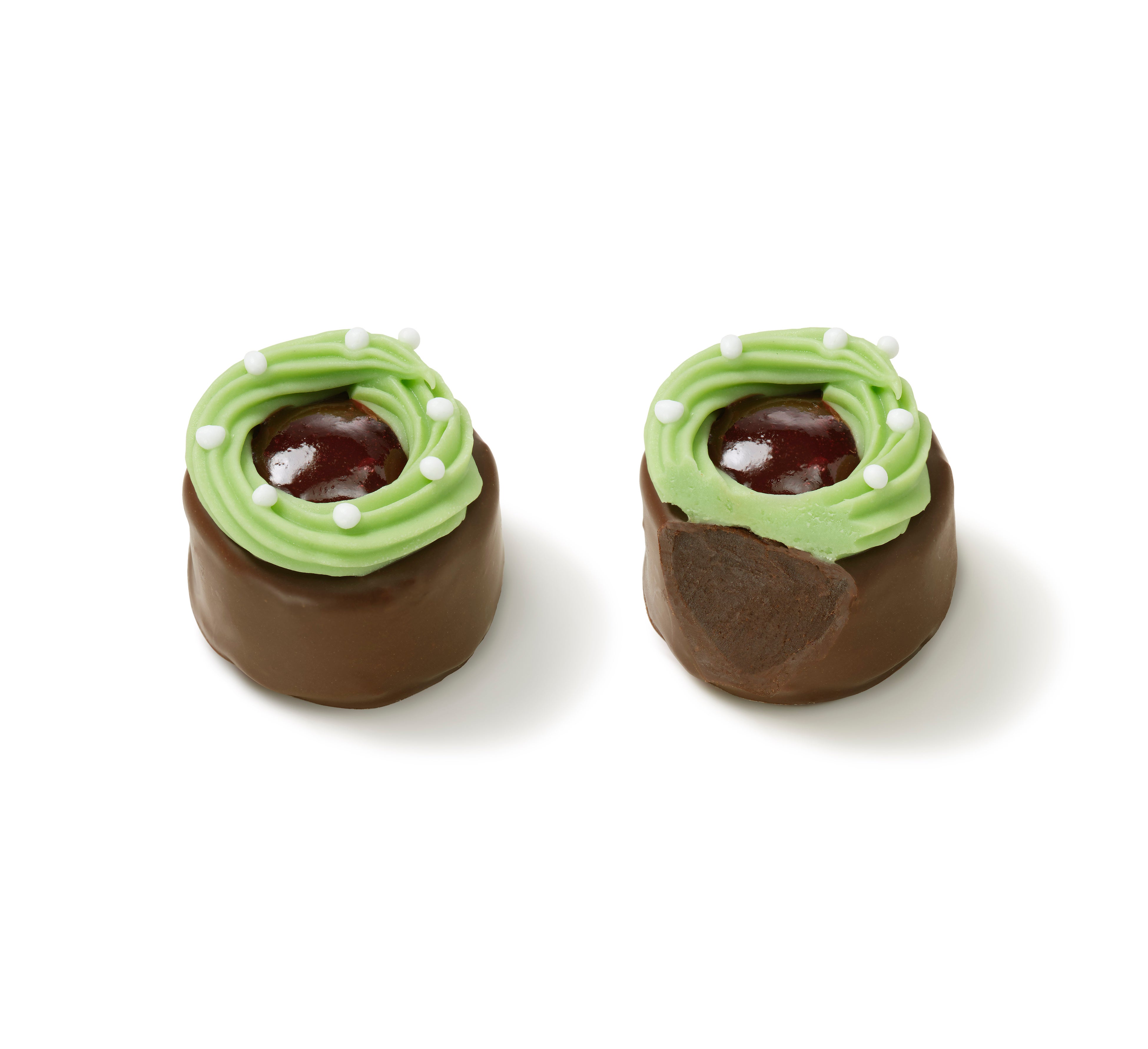 煮詰めたフランボワーズピューレを加えたビターガナッシュにクリスマスカラーのバタークリームとフランボワーズジャムをトッピングしました。