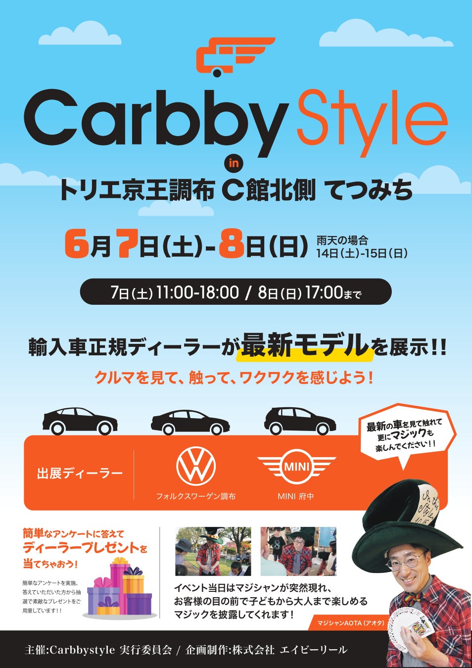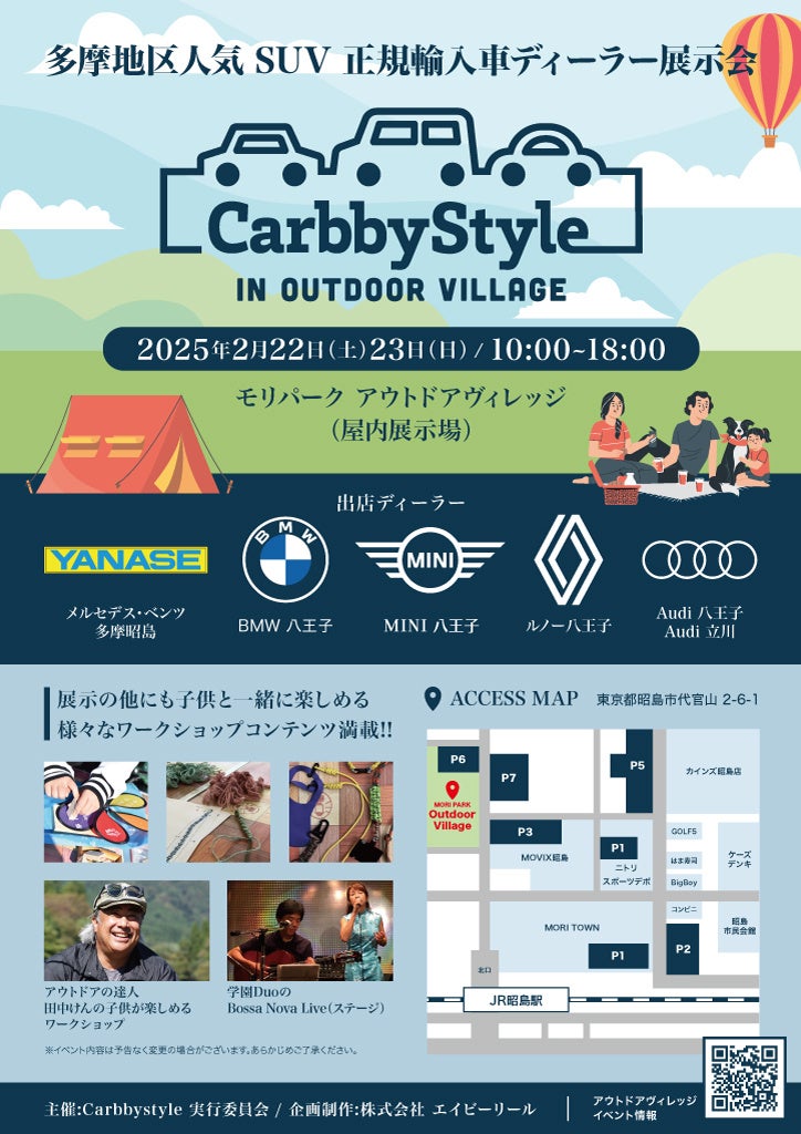株式会社エイビーリール(東京都)は、2026年3月21日(土)・22日(日)の2日間、八王子えきまえテラスにて、最新の輸入自動車や電気自動車(EV)が一堂に集結する展示イベント「CarbbyStyle(カービースタイル)」第4弾を開催いたします。