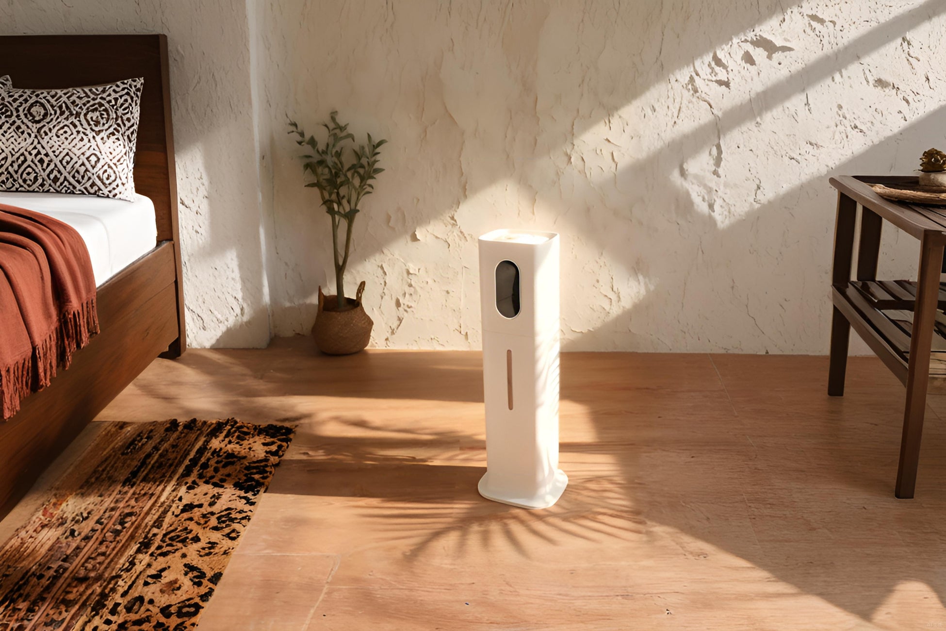 お好みの湿度(40~90%)を設定すると、自動的にミストの吹き出しと停止が行われます。設定湿度に達すると加湿が停止し、湿度が下がると再び加湿が開始されます。これにより、過剰な加湿による床の水濡れやカビの発生リスクが軽減され、快適な湿度を保つことができます。