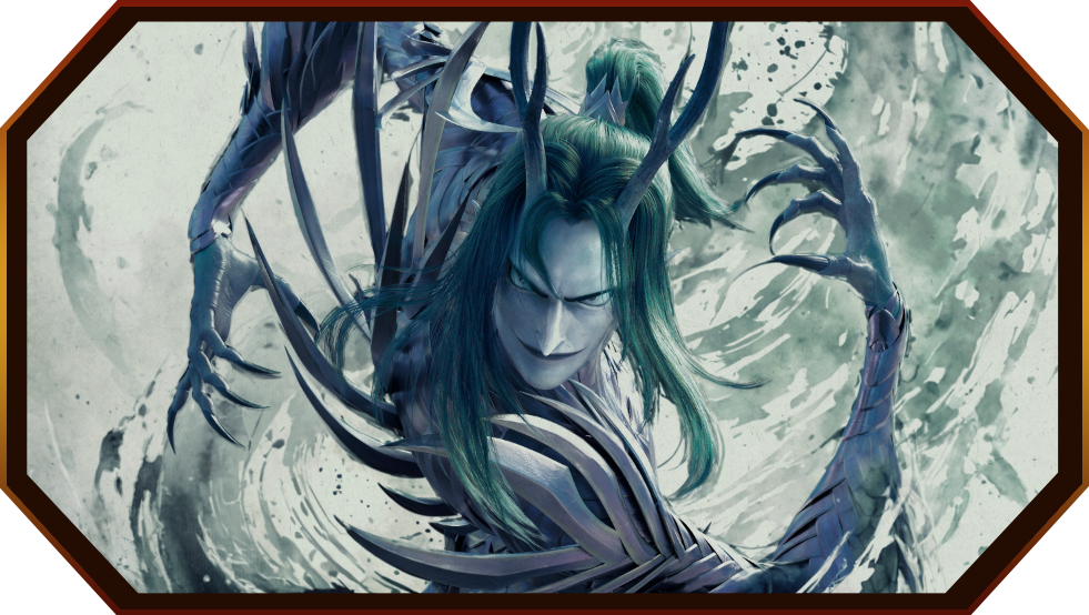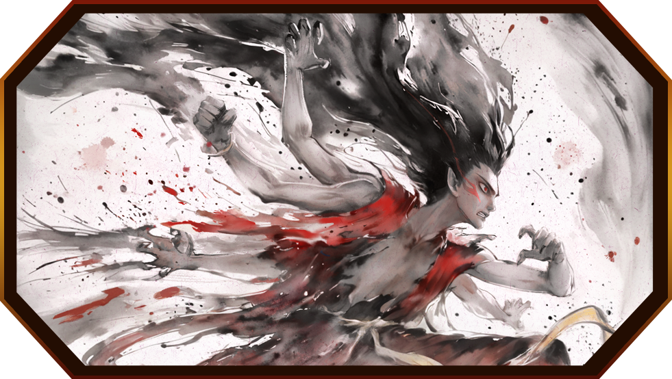 魔性制御法具「乾坤圈」を外し、本来の力を解き放ったナタの姿。「乾坤圈」を腕輪にして最小限の制御にすることで、意思を保ちつつ力を引き出し陳塘関(ちんとうかん)を危機から救った。