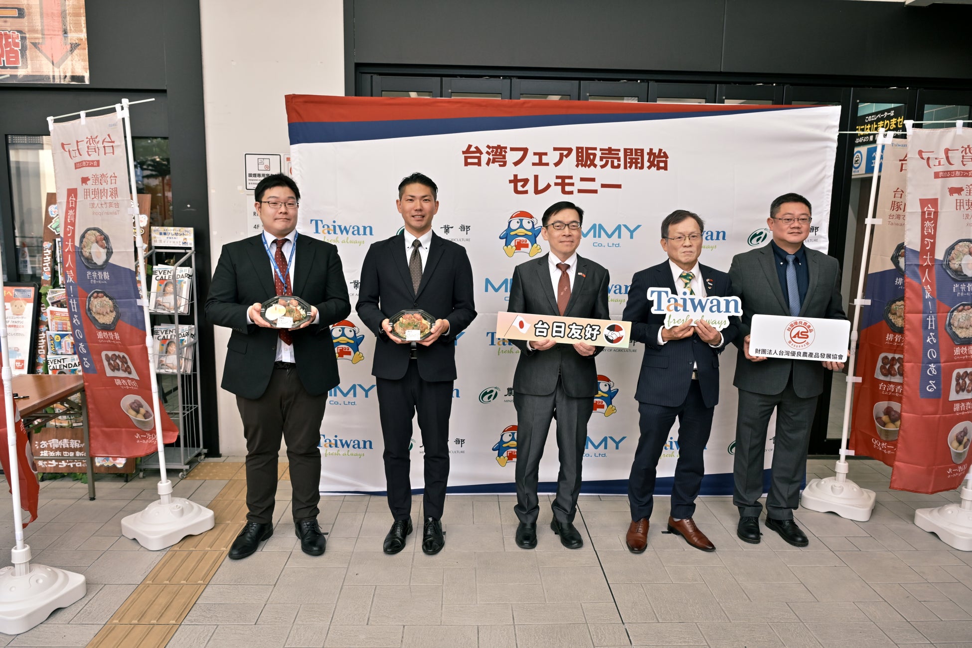 開幕式には多くの来賓やメディアが集まり注目を集めました。台北駐日経済文化代表処横浜分処の范振国処長と、同代表処農業部の王清要部長が来場し、台湾農産品の日本流通における新たな展開の幕開けを共に見届けました。初日の会場には多くの来場者が訪れ、試食コーナーでは「香りが豊かで噛み応えがあり、ビールとの相性も抜群」と台湾ソーセージが高く評価されました。さらに、弁当やさつまいもボールも「台湾夜市のような親しみやすい味」で即日完売となり、「冷凍商品を購入して自宅でも楽しみたい」との声も多く寄せられました。