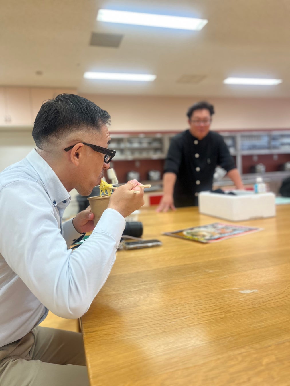 同協会が調理する商品のひとつが、岩見沢市の特産品である玉ねぎをたっぷり使用したクリーミーな「オニオン・ラテぬ〜どる」。この商品は、今回のオータムの企画として「岩見沢の魅力的な食材を使用したメニューをオータムでPR販売し、その後も岩見沢に訪れることでそのメニューを食べることができる」が大きな軸になっており、この企画に快く賛同してくれたのが岩見沢温泉ほのかを運営するほのかグループの総料理長、谷口隆俊総料理長。