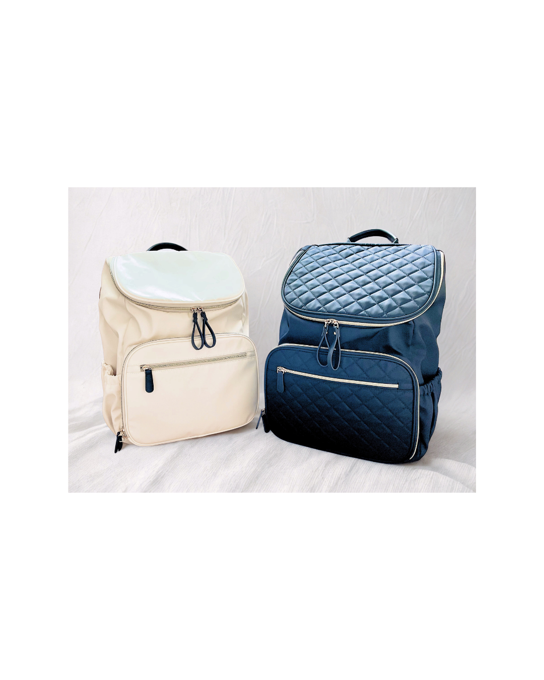 ケア用品、着替え、仕事道具まですべて収納できる大容量ながら、軽量素材を採用。肩への負担を最小限に抑え、ママの毎日を快適にサポートします。床に置いても自立するフォルムで、荷物の出し入れもスムーズです。