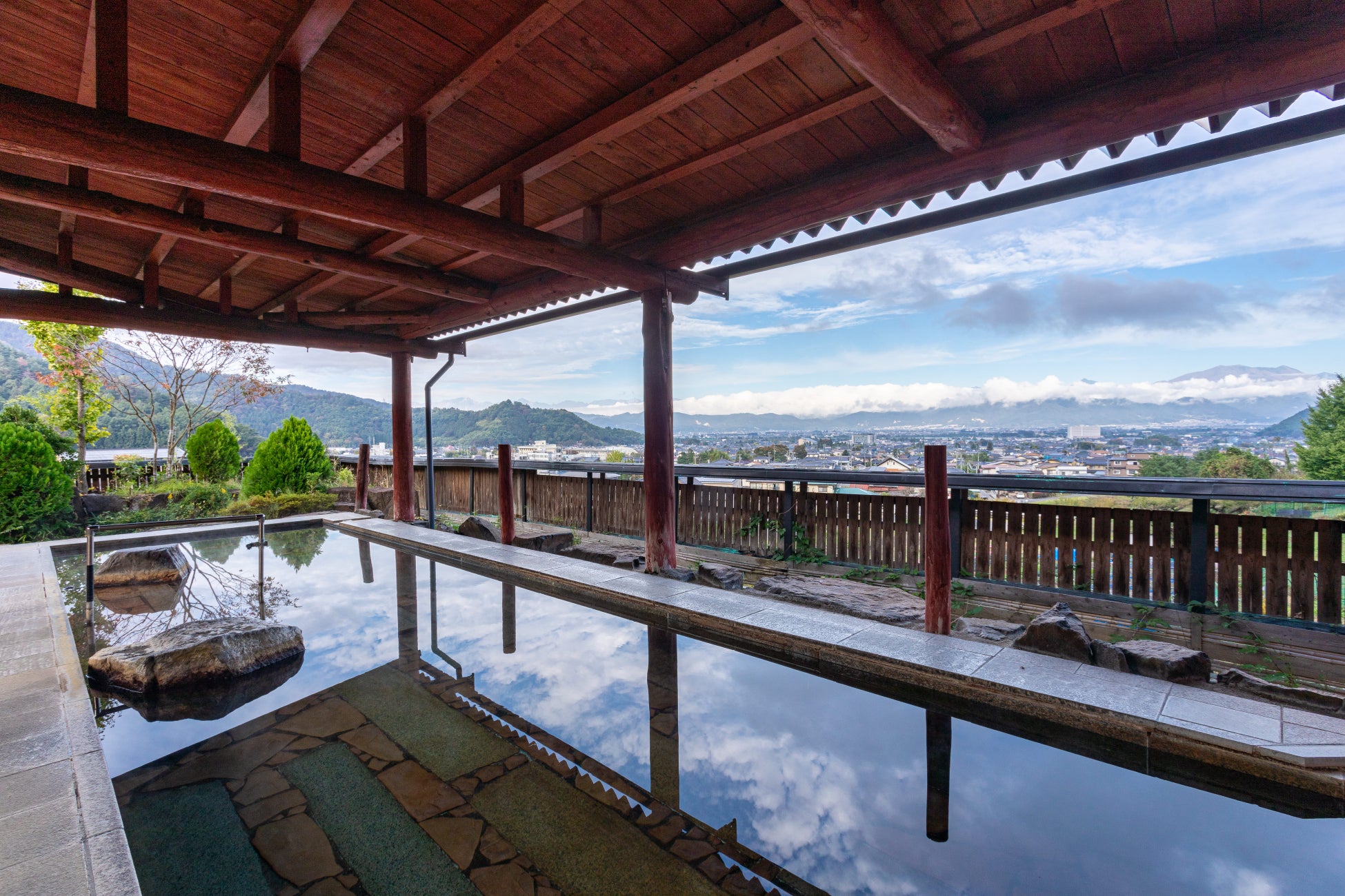 皆神山のふもと、静かな自然に囲まれたロケーションに位置し、館内からは善光寺平を一望できます。温浴エリアには、眺望を楽しめる展望風呂、四季の移ろいが感じられる庭園露天風呂、内湯の計3種類のお風呂を完備。ゆっくりと温泉に浸かりながら、心と身体を癒すひとときをお過ごしいただけます。館内には、約1万冊の書籍やコミックが揃うリラクゼーションスペースがあり、世代問わずくつろげる空間をご用意しております。
