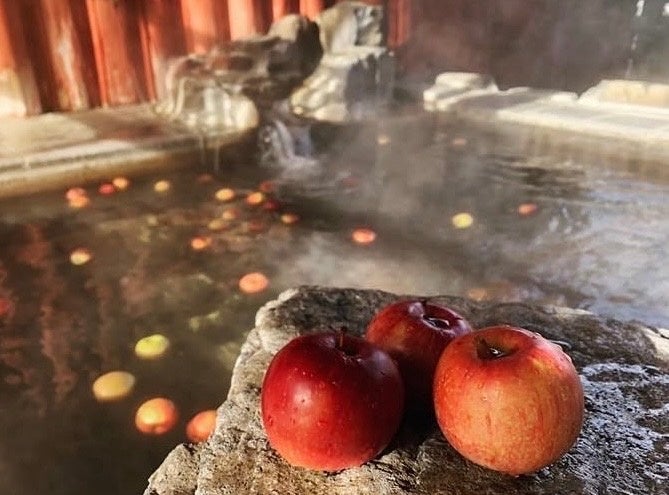 善光寺平を一望できる展望露天風呂「見晴らしの湯」では、信州のりんごを浮かべた「りんご湯」を毎週日曜日に実施。さわやかなりんごの香りと景色を眺めながら特別な癒しの時間をお過ごしいただけます。