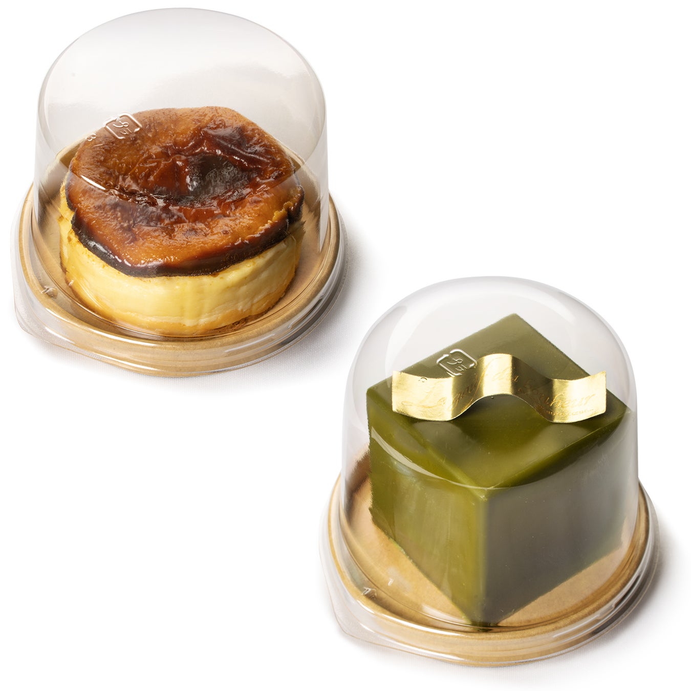 非耐熱仕様ながら直置きが可能な紙トレーのため、ケーキやサンドケーキ(生どら焼き)、写真のような大きめの焼き菓子、細かい焼き菓子の詰め合わせなど、幅広い用途に対応できる汎用性の高いトレーです。