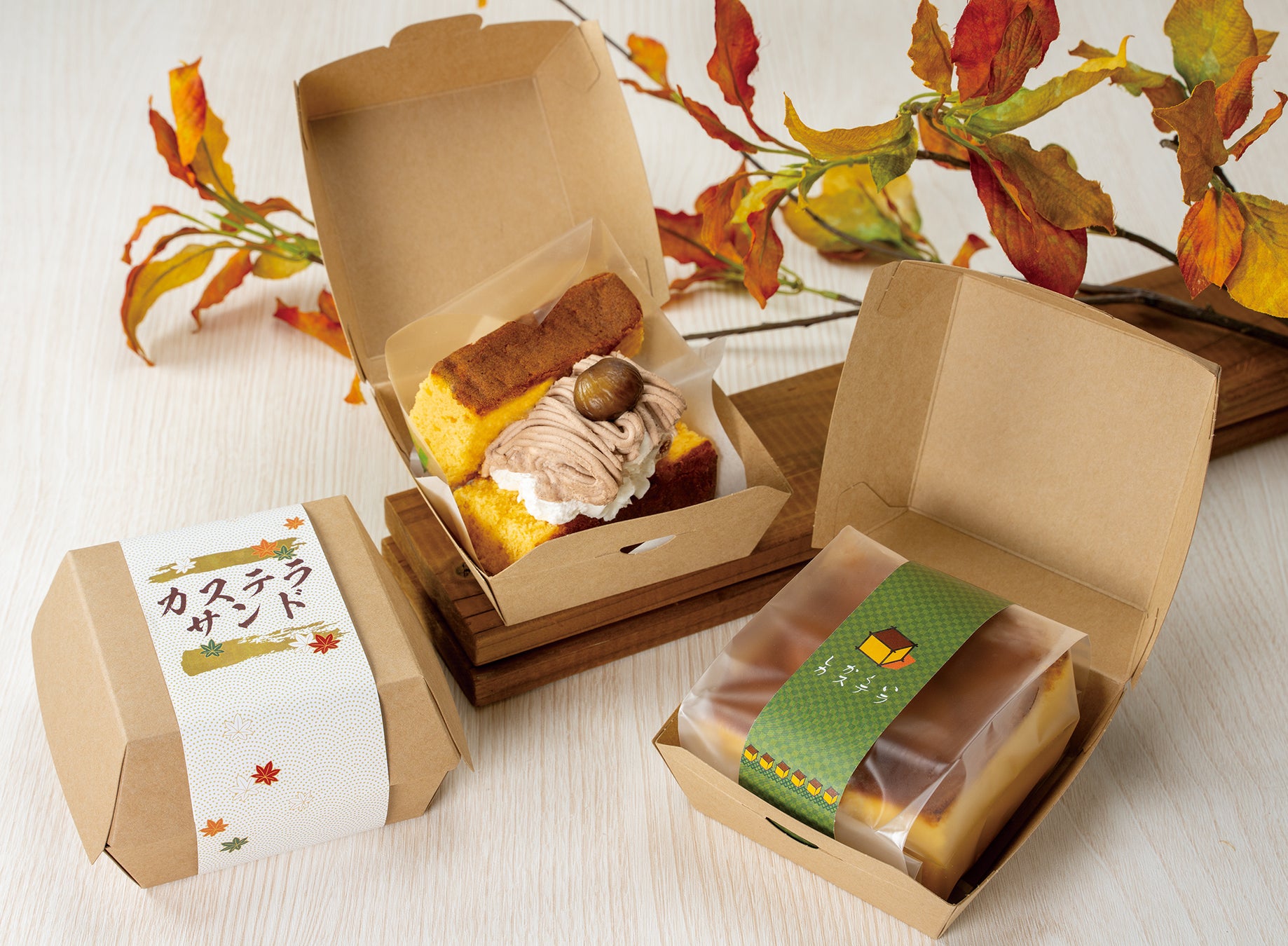 これまでケーキ箱や貼箱に入れていたパウンドケーキやカステラなどの焼き菓子も、あえてバーガー箱にすることで新鮮な提案が可能です。